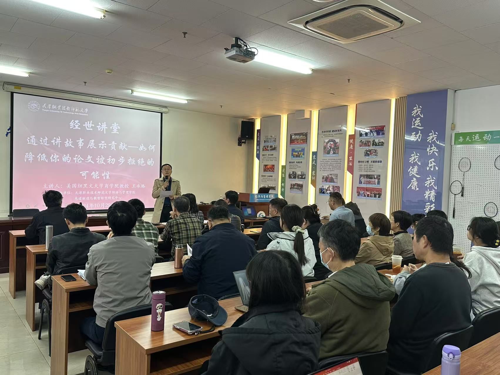 10月29日,永利集团官网举办“经世讲堂”第七讲,邀请美国纽黑文大学商公司营销学终身教授、Journal of Research in Interactive Marketing (影响因子9.6, JCR一区)主编王承璐教授,在第一教学楼701教室开展“通过讲故事展示贡献—如何降低你的论文被初步拒绝的可能性”主题讲座。会议由副经理董树功主持,经理齐莉丽、副经理齐旭高、部分专任教师、研究生及电子商务专业本科生参会。