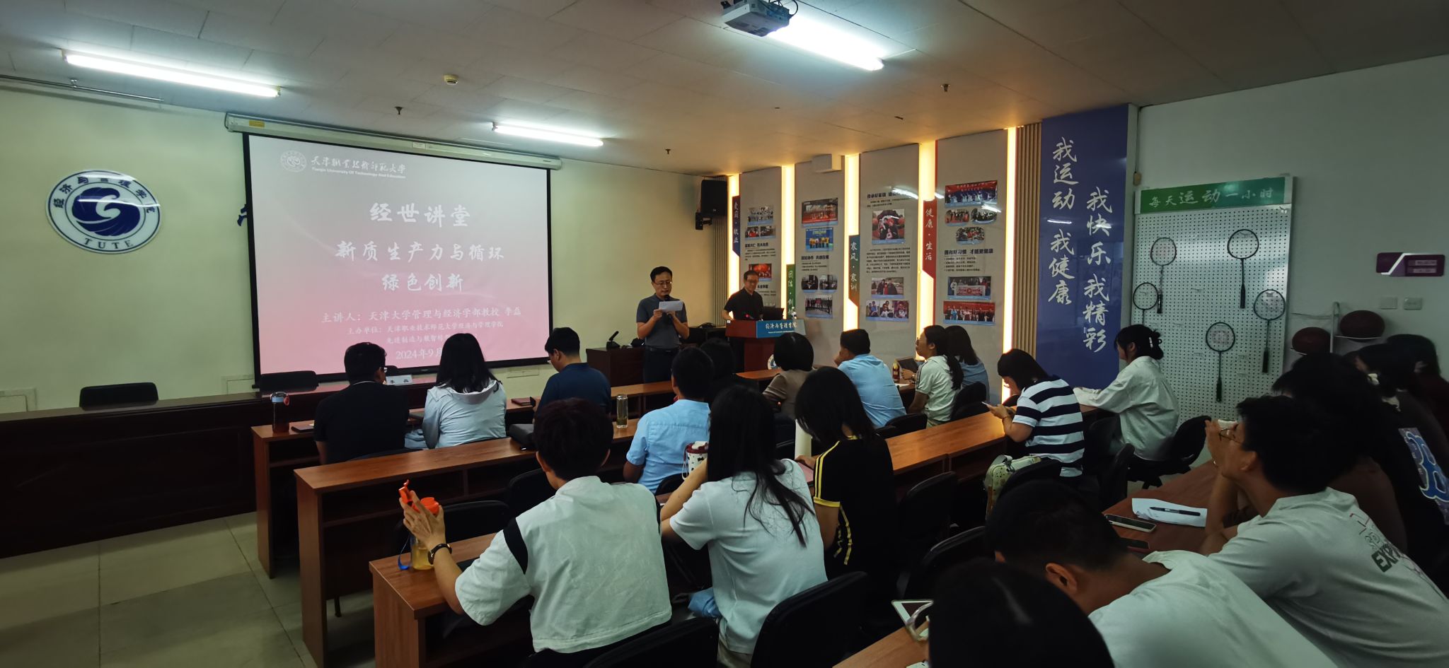 在公司喜迎45周年校庆之际,永利集团官网于9月11日在第一教学楼701举办“经世讲堂”第五讲,邀请天津大学管理与经济学部教授、博士生导师李磊教授作“新质生产力与循环绿色创新”主题学术讲座。讲座由副经理董树功主持,副经理齐旭高、部分教师及研究生参会。
