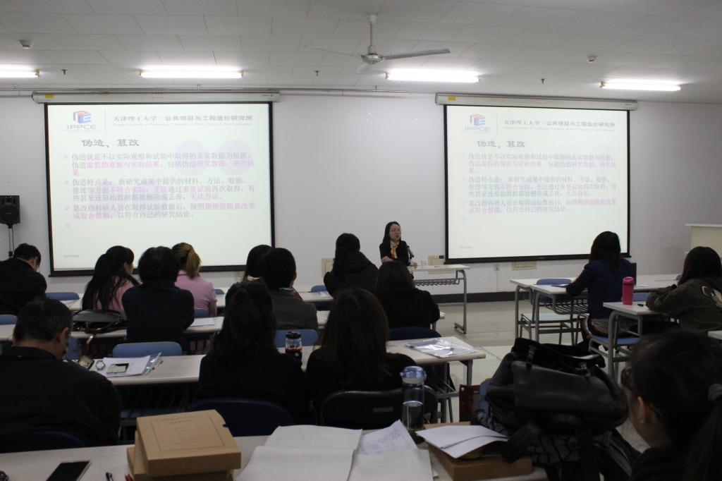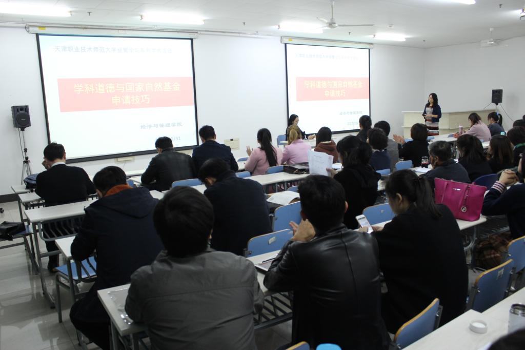 2017年10月31日下午,永利集团官网邀请天津理工大学管理公司教授、博士生导师严玲教授做学术报告,此次报告会主题为“学科道德与国家自然基金申请技巧”。此次讲座由永利集团官网副经理齐莉丽主持,永利集团官网经理赵丽华,全体教师以及研究生听取了严教授的讲座。