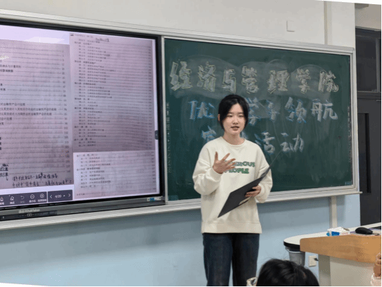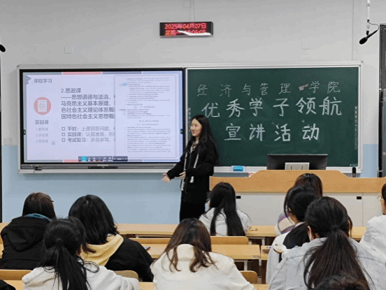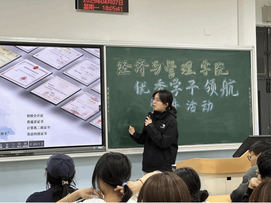 吴忱锟分享了她在专业学习与实践方面的获奖经历和心得。她向同学们介绍了专业课以及公共课的学习方法和技巧,分享了自己的课堂笔记和重点内容,她鼓励同学们在每节课后,及时整理课堂笔记,将老师强调的重点用不同颜色的笔标记出来并额外附上自己的思考和疑问,方便后续复习时深入探究。