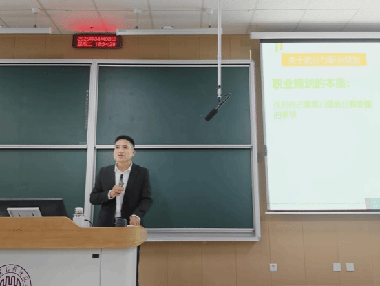 刘佰明结合自身丰富的经验和专业知识,深入分析了当前就业市场的现状与趋势,分享了许多实用的求职技巧,如简历撰写、面试准备等,为同学们的求职之路提供了有力指导。同时,他深入浅出地剖析了AI技术在当今职场和创业领域的无限潜能。他表示,AI已不再是实验室中的神秘技术,而是渗透到各个行业,成为推动产业变革、创造新机遇的强大引擎。在创业中,AI可以进行精准的市场分析,挖掘潜在客户;在就业时,掌握AI技能能让求职者在众多竞争者中脱颖而出。他指出,同学们应充分认识到就业市场的竞争态势,明确自身的优势与兴趣所在,尽早制定合理的职业规划。他强调,持续学习和技能提升是保持竞争力的关键,同学们不仅要掌握专业知识,还要积极拓展跨学科能力,提升综合素质。