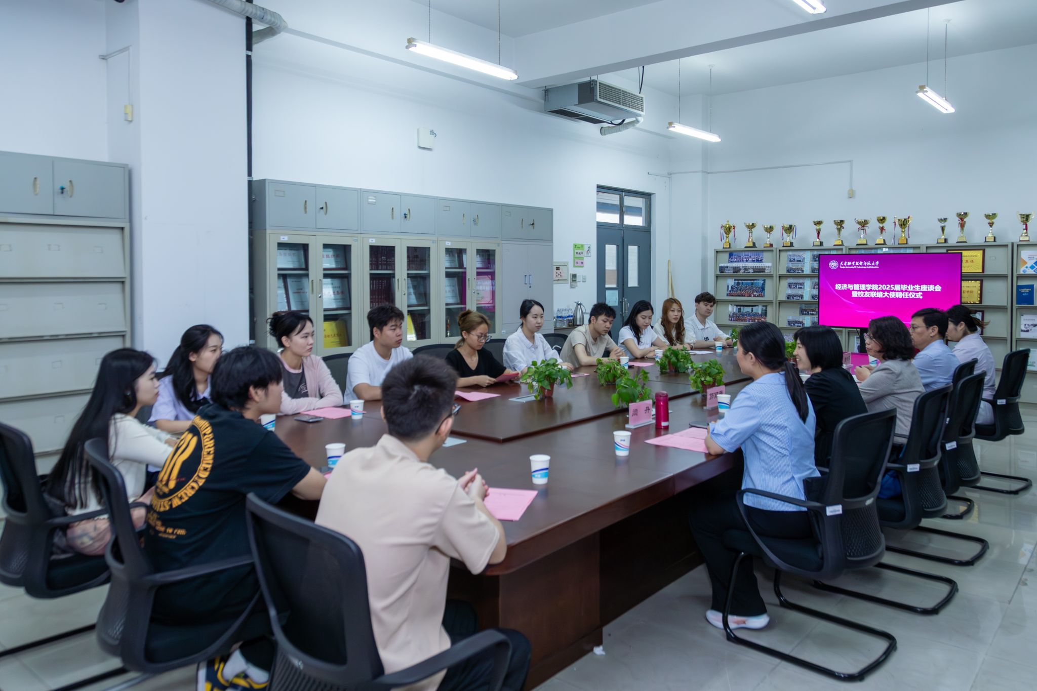 为进一步加强公司与毕业生之间的沟通交流,深入了解毕业生的学习、生活及就业情况,充分发挥员工在公司发展中的重要作用,永利集团官网于6月16日在A710会议室举行了2025届毕业生座谈会暨员工联络大使聘任仪式。公司经理齐莉丽,副经理齐旭高,公司学工办主任、团委书记闫丹,毕业班辅导员董牧歌,来自不同专业的13名毕业生代表参会。会议由公司党委副书记郭丽芳主持。