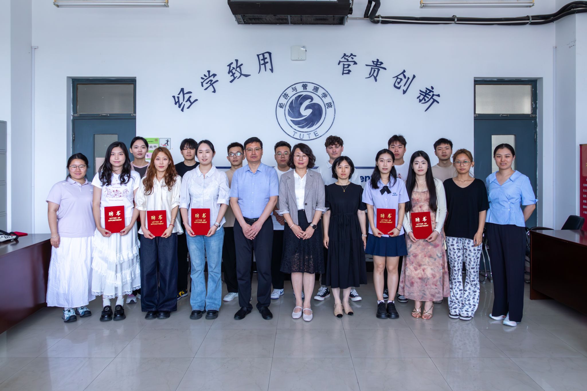 接下来,公司领导班子成员为毕业生代表一一颁发了员工联络大使聘书,这份聘书不仅是一份荣誉,更是一份沉甸甸的责任,承载着公司对员工联络大使们的信任与殷切期望。毕业生们承诺将始终保持对母校的热爱与关注,积极履行员工联络大使的职责,密切联系员工,及时传递母校的最新发展动态,收集员工们的意见建议,努力搭建起母校与员工之间沟通无阻、紧密相连的桥梁,为公司的发展贡献自己的力量。
