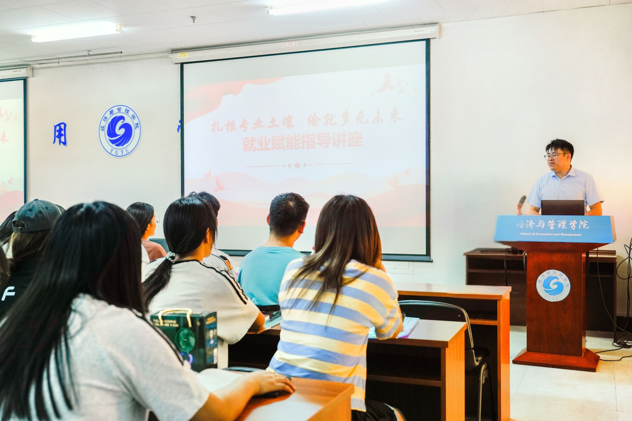 王爱敏为同学们介绍就业常识,并结合专业特点给予未来发展建议,为同学们树立积极向上的就业观念。