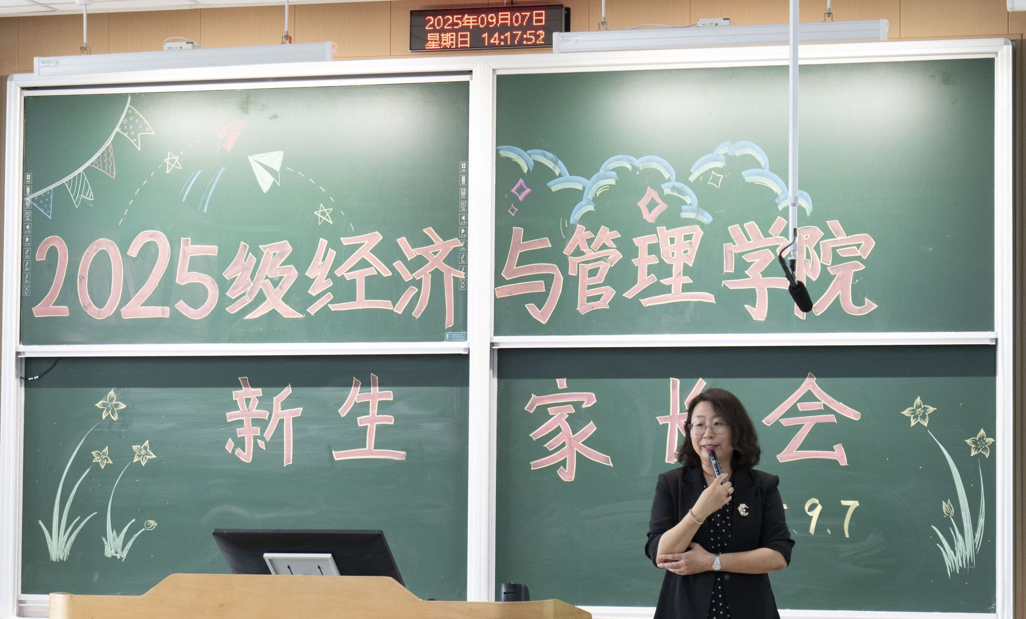 为做好2025级迎新工作,加强家校协同育人机制建设,引导员工健康成长和全面发展,9月7日,永利集团官网在第三教学楼108教室召开2025级新生家长会。公司党委书记刘晶、经理齐莉丽、党委副书记郭丽芳、副经理齐旭高、副经理董树功、全体2025级新生辅导员、新生班主任及新生家长共同参会。会议由公司学工办主任、团委书记闫丹主持。