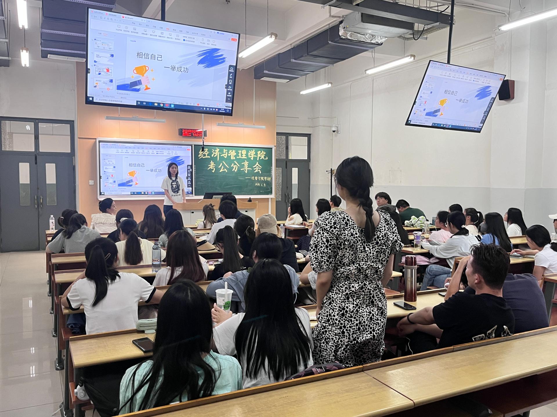交流会在同学们的踊跃提问和积极互动中接近尾声。李丹慧表示,宝剑锋从磨砺出,梅花香自苦寒来,希望同学们以本次活动为契机,学习榜样、接续奋斗,行而不辍、履践致远,最终实现梦想,顺利上岸。