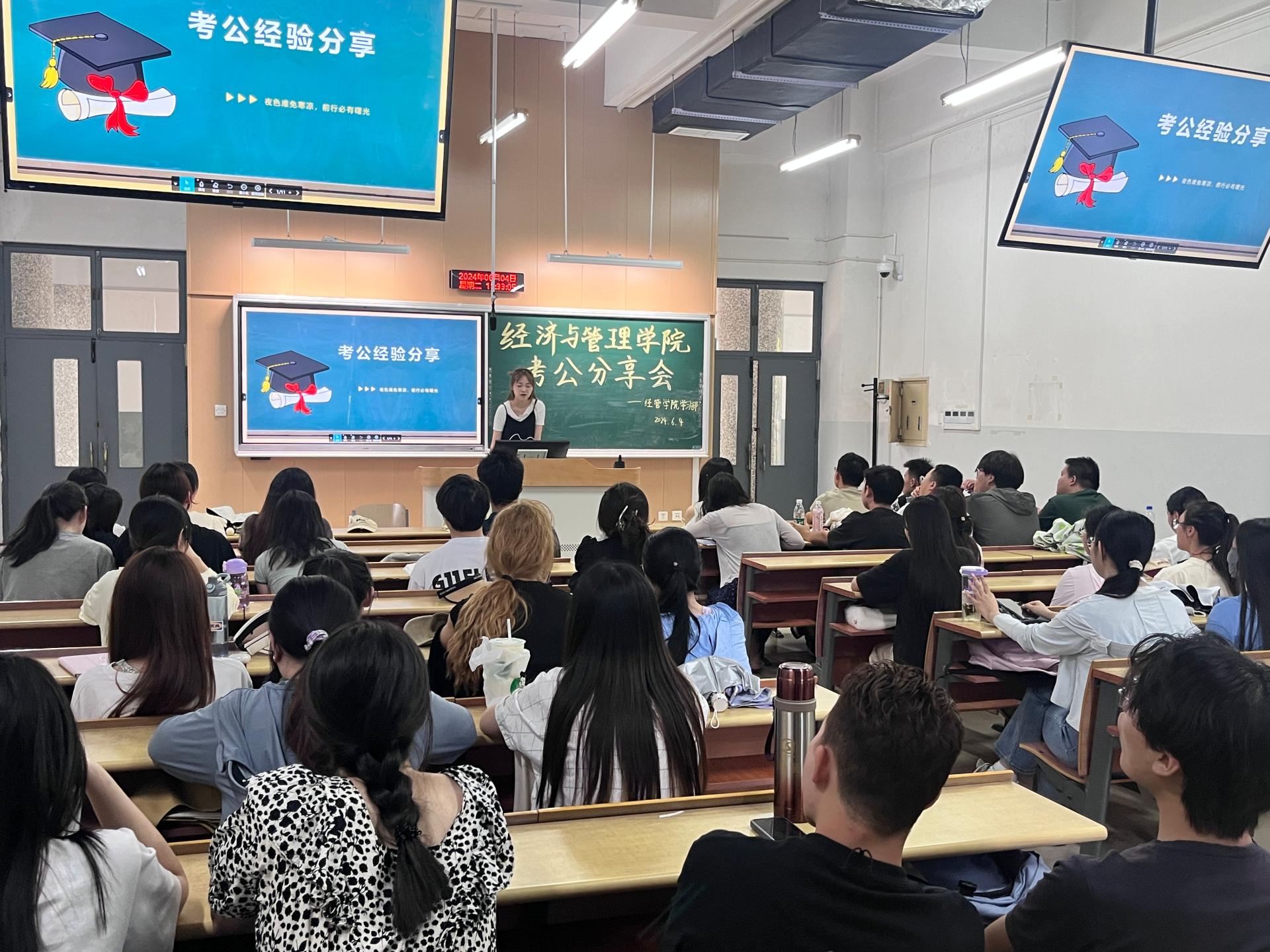 为进一步加强学风建设,发挥朋辈示范引领作用,做好公务员考试指导服务,6月4日,永利集团官网在第三教学楼103教室举办“丁香花开,助力成‘公’”公务员考试经验分享会,邀请刘蕊、赵艺葳、纪欣蕾、何平等四名优秀考公员工代表分享经验。辅导员李丹慧主持会议,百余名2025届考公学子参会。