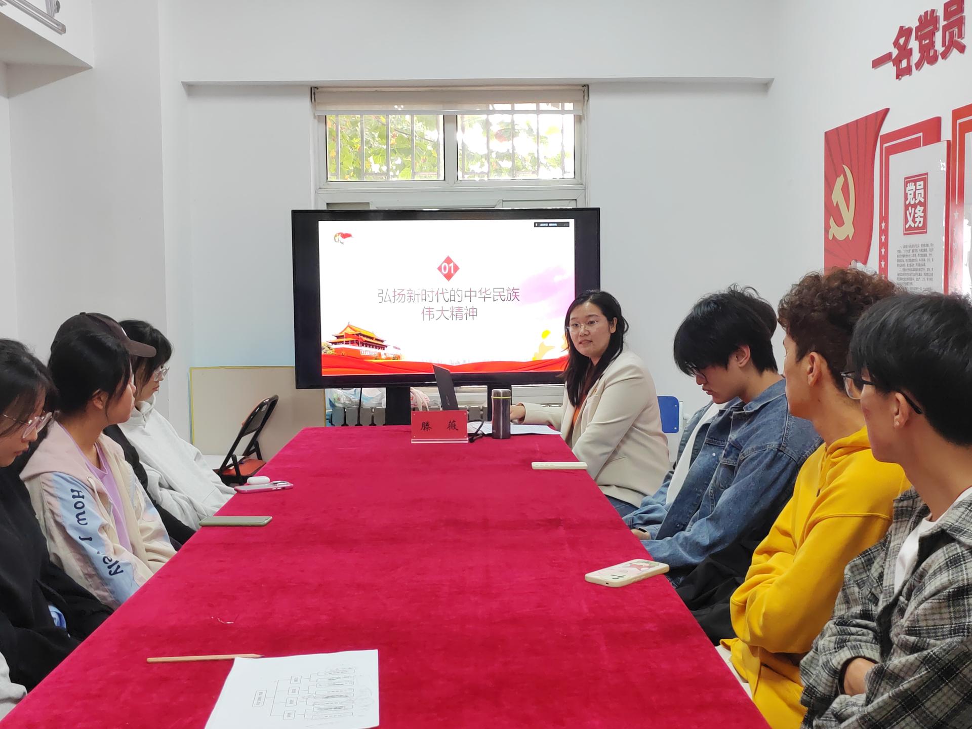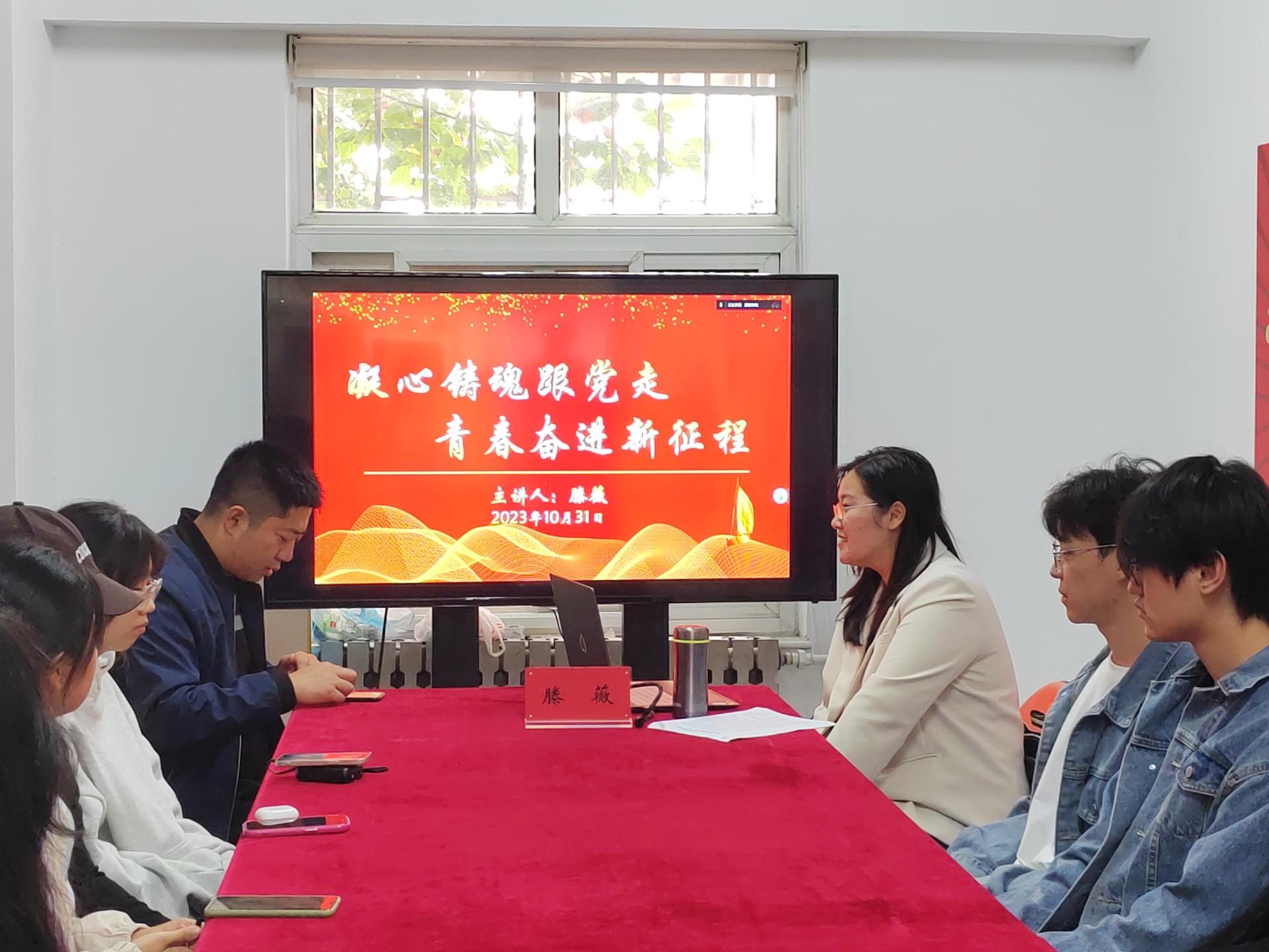 滕薇老师声情并茂的为团员青年们宣讲中国共产党人的精神谱系,以及党在不同历史时期锻造的一系列伟大精神和谱写伟大民族精神的新篇章,重点阐述了党的二十大报告中的新观点、新论断和新思想。她希望青年们坚定理想信念、永葆爱国情怀、增强能力本领,争做“有理想、敢担当、能吃苦、肯奋斗”的新时代好青年,书写青春奋斗答卷。