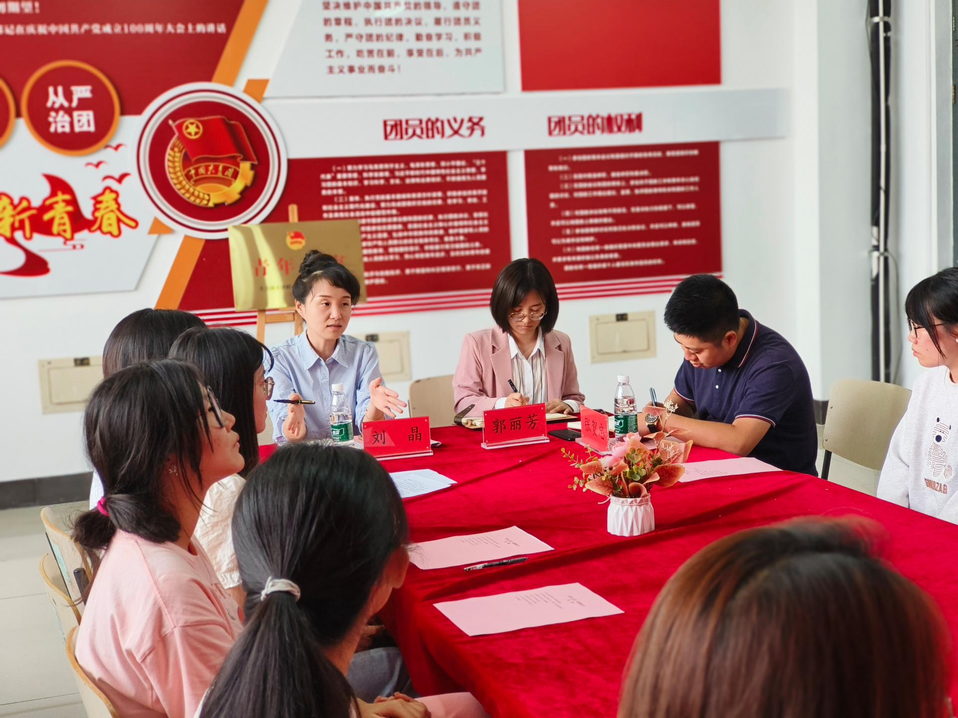 仪式结束后,现场召开了座谈会,校团委书记刘晶、公司党委副书记郭丽芳与团员青年进行深入交流,关心了解同学们的日常学习生活,并为同学们答疑解惑。郭丽芳表示,希望同学们坚定理想信念,培育高尚品格,练就过硬本领,志存高远,脚踏实地,努力在实现中华民族伟大复兴的中国梦的生动实践中放飞青春梦想,为强国建设、民族复兴贡献青春力量。