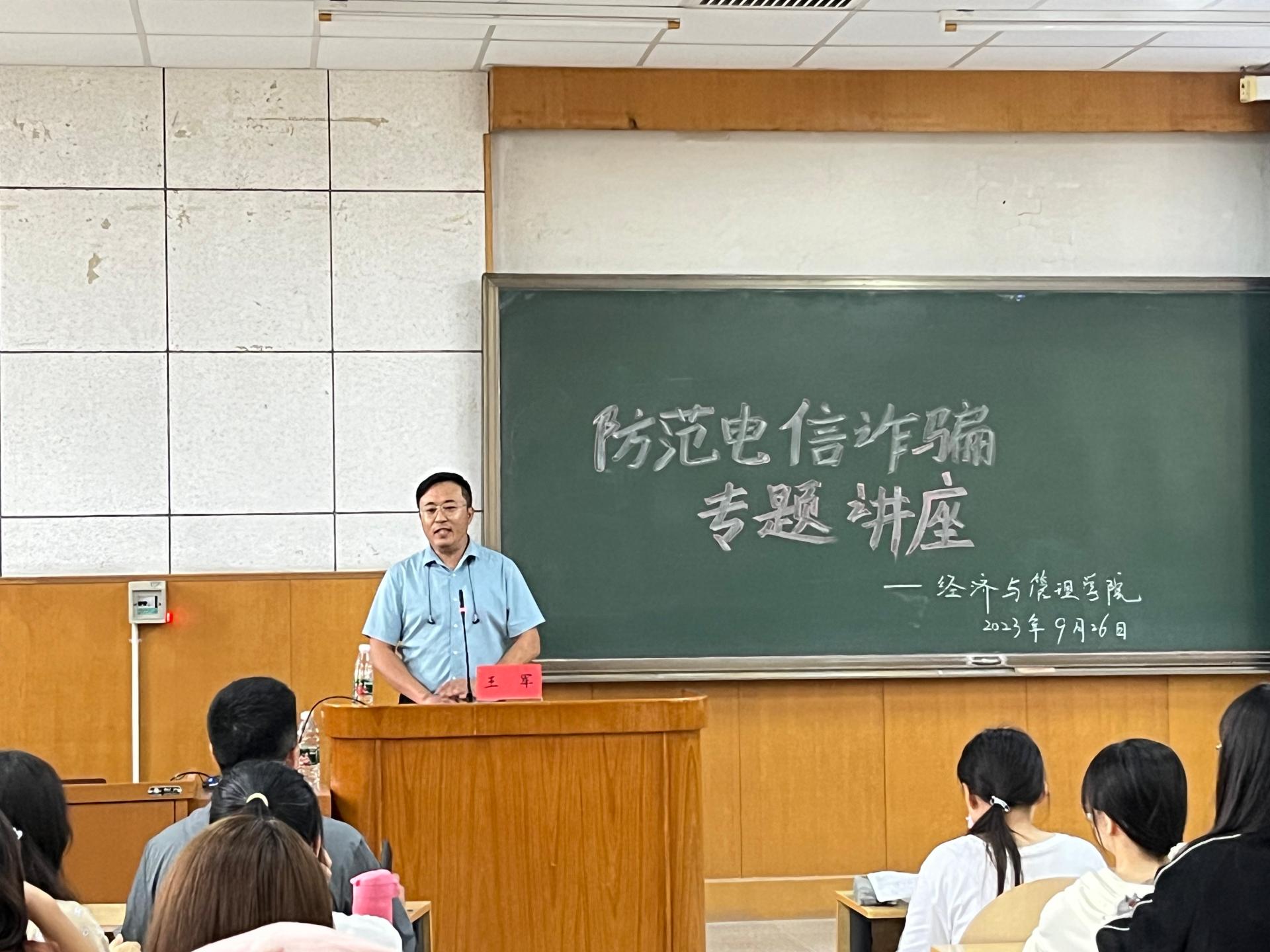 为进一步普及防范电信网络诈骗安全知识,提高员工拒诈防骗的能力,筑牢校园反诈安全防线,9月26日,永利集团官网邀请渤海银行海河支行副行长王军,在阶梯教室201开展“汇聚金融力量 共创美好生活”防范电信诈骗主题讲座。讲座由公司团委书记张贺忠主持,150名师生参加。