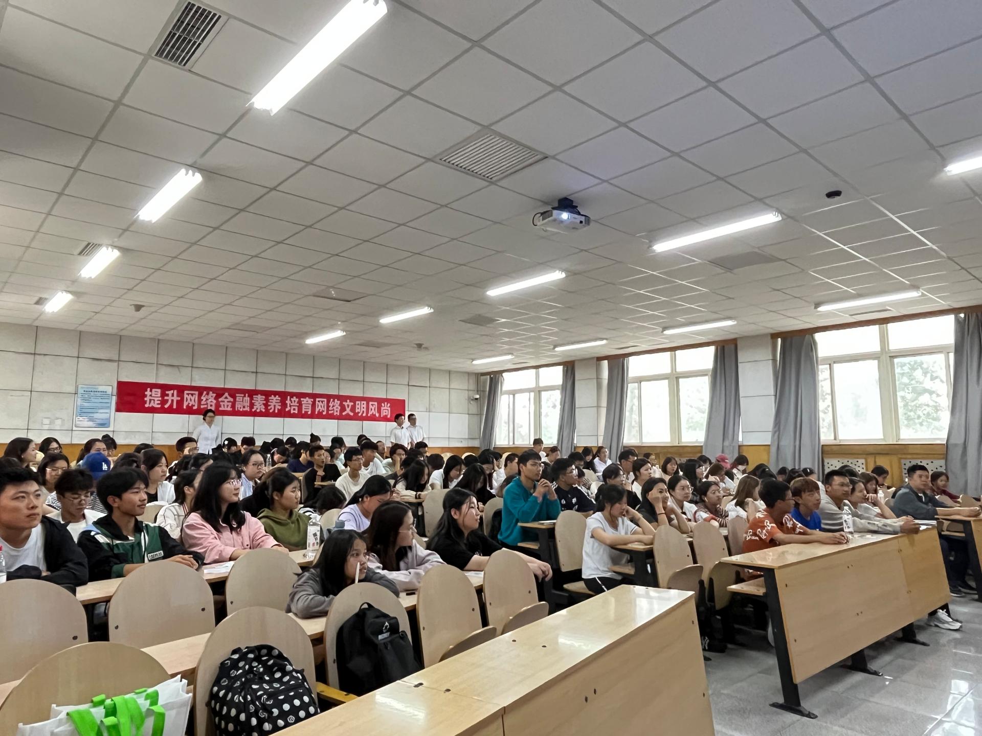 讲座中,副行长王军重点围绕“讲解金融安全知识”、“介绍网络诈骗案例”、“规避电信诈骗陷阱”、“普及相关法律法规”等四个方面进行讲解。他结合身边金融诈骗案例以及反电诈题材电影内容,用简单易懂的语言向同学们介绍了电信诈骗的特点和危害。他表示,一是要及时下载“国家反诈中心APP”,并牢记“三不一多”防范电信诈骗原则,即不轻信、不泄露、不转账,多留心。二是要遵守《反电信网络诈骗法》,远离校园贷、套路贷,禁止非法买卖“两卡”和社交账号,提高自我防范意识,不贪便宜不上当,不给违法犯罪分子可乘之机。