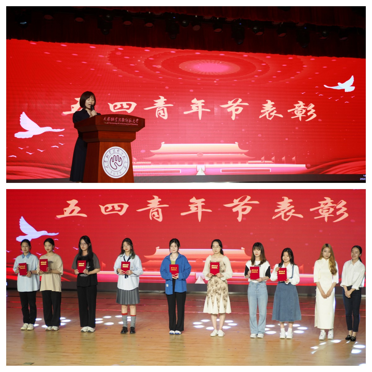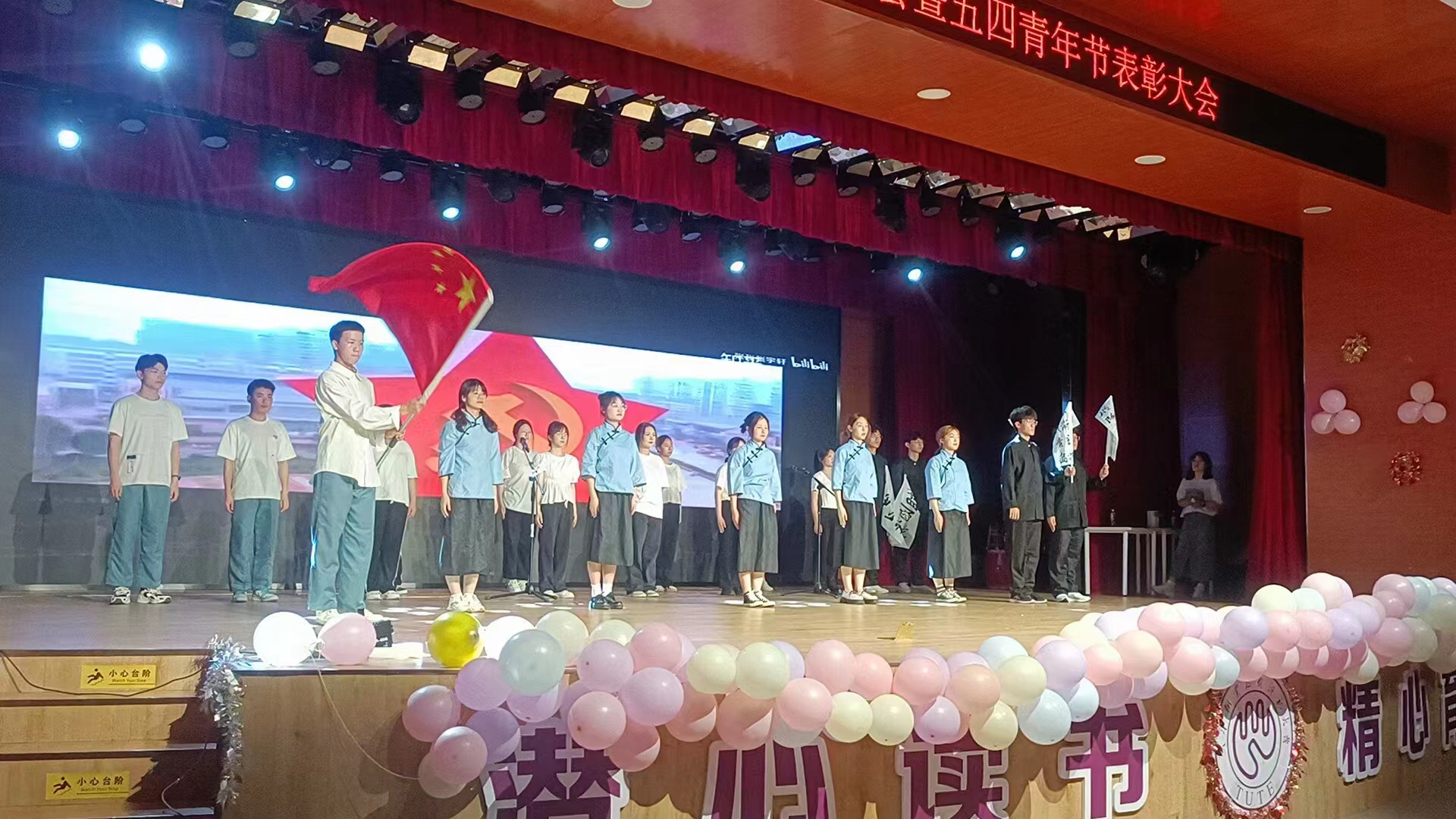 五四精神历久弥新,青春中国风华正茂。为深入学习宣传贯彻党的二十大精神,弘扬五四精神,表彰先进典型,激励全院各级团组织、团员和团干部创先争优、奋发进取,团结引领广大青年在全面建设社会主义现代化国家进程中建功立业,5月19日,永利集团官网在老员工活动中心四楼展演厅举办红五月“传承五四薪火·汇聚青春动能·建功时代行动”晚会暨五四青年节表彰大会。公司常务副书记吴平、校团委副书记汪曼、公司党委副书记郭丽芳、公司团委书记张贺忠、全体辅导员、先进集体和个人代表以及200余名团员青年参加本次活动。