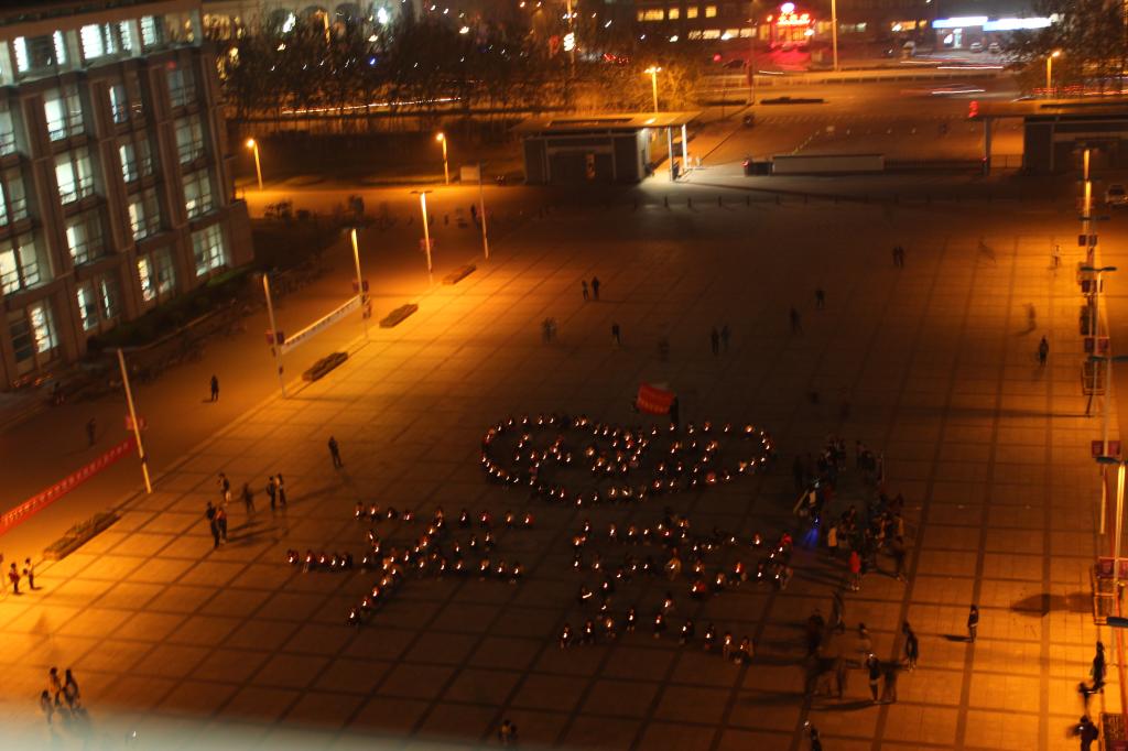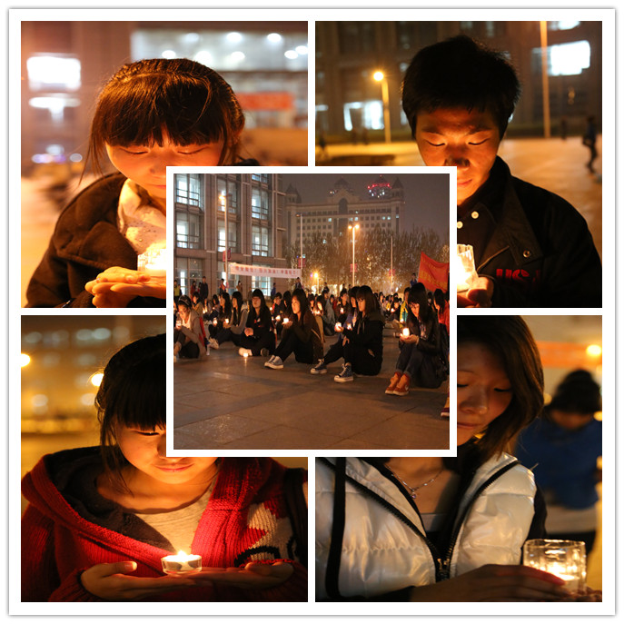 经管学子们在广场中心手捧烛光摆出“平安” 字符以及包含数字“420” 的烛光心型图案,寓意牢记4.20,时刻心系雅安。同学们怀着无比沉痛的心情悼念逝者,全体默哀三分钟,广场一片肃静,所有人,伫立,低头,气氛凝重。默哀结束以后,在院员工会主席顾宾宾的带领下齐声高喊 “雅安挺住,四川加油,中国给力;雅安,我们与你同在”,一声声口号声响彻广场上空。一盏盏蜡烛点亮广场的上空,也更希望此刻能够点亮所有雅安同胞们的心,灾难无情人间有情,敬献我们小小的微薄之力,为雅安祈福,希望所有雅安人坚强、平安、幸福。芦山,加油!雅安,加油!中国,加油!