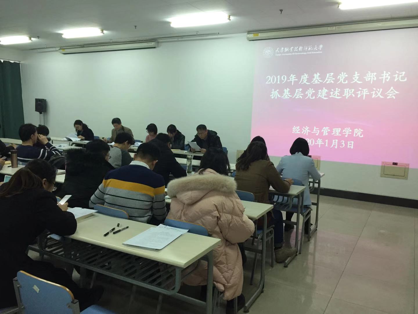 为进一步推动全面从严治党向基层延伸,2020年1月3日下午,经济与管理公司党委在第一教学楼701召开2019年基层党支部书记述职评议会。校督导组成员、公司全体处级干部、党委委员、各党支部书记、党支部委员、师生代表等30余人参加,会议由党委书记程中主持。