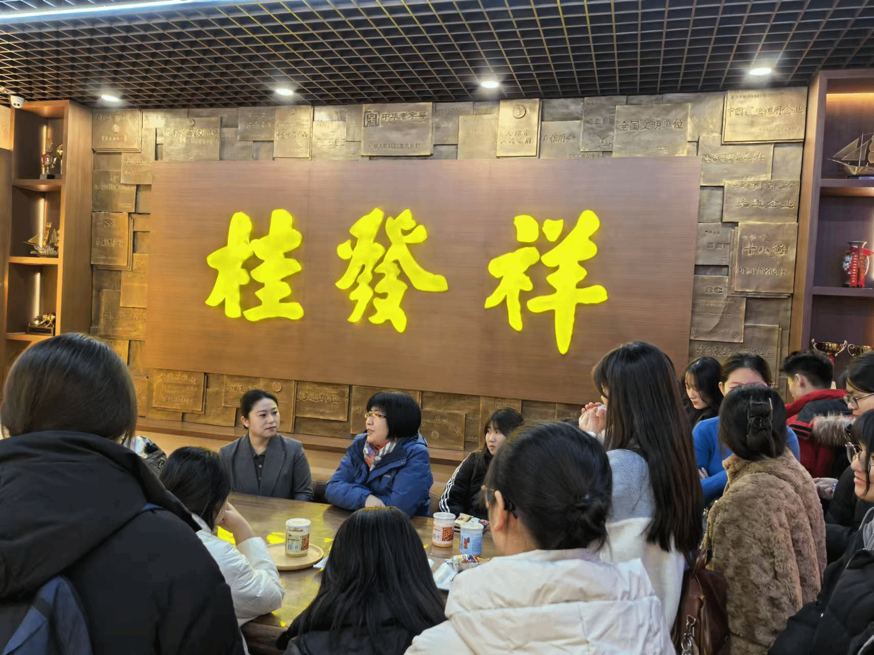 为进一步深化产教融合、加强专业内涵建设、拓宽校企合作渠道,12月19日,永利集团官网人力资源与社会保障系罗青兰教授、李薇、曹洁老师带领人力专业员工代表,走进桂发祥十八街麻花文化馆参观调研,触摸新时代新征程上“津门老字号”企业发展新脉搏,探索未来发展新动向。天津桂发祥十八街麻花食品股份有限公司工会主席杨淅寒热情接待了来访师生。