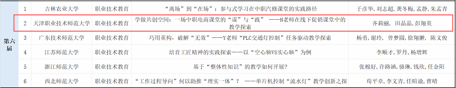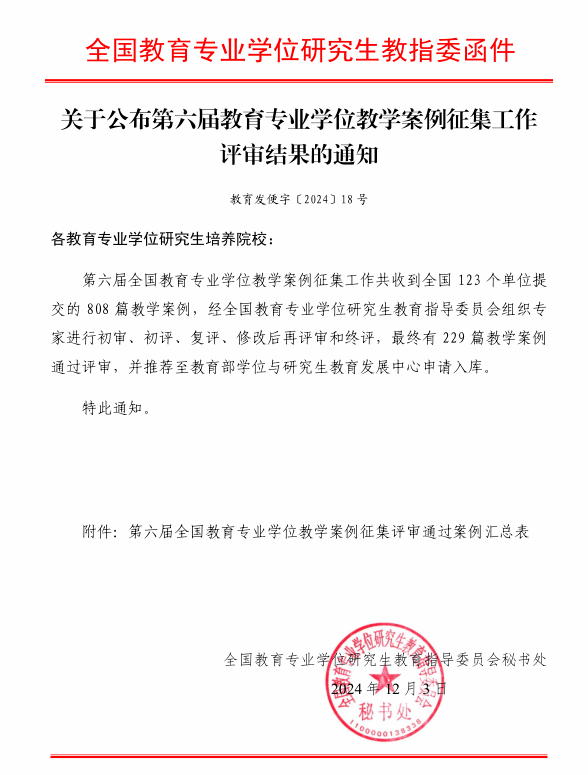 近日,全国教育专业学位研究生教育指导委员会发布了第六届教育专业学位教学案例征集工作评审结果,永利集团官网经理齐莉丽教授带领教研团队撰写的《学做共创空间:一场中职电商课堂的“谋”与“践”——H老师在线下促销课堂中的教学探索》,成功入选中国专业学位教学案例中心案例库。