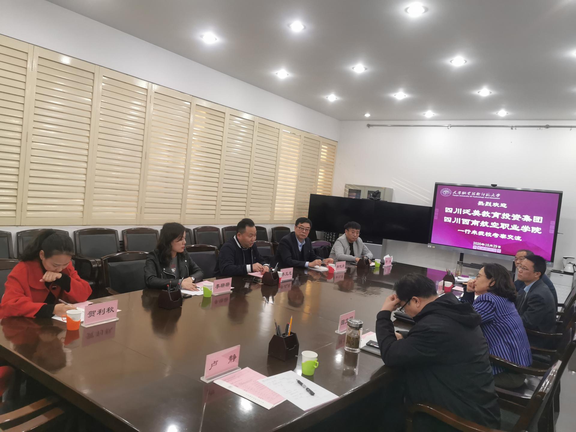 10月29日,四川泛美教育投资集团副总裁李玉龙,四川西南航空职业公司经理衡代清等一行5人,就经济管理公司航空物流班人才培养情况开展交流访问,副董事长孙奇涵亲切会见李玉龙一行并座谈。