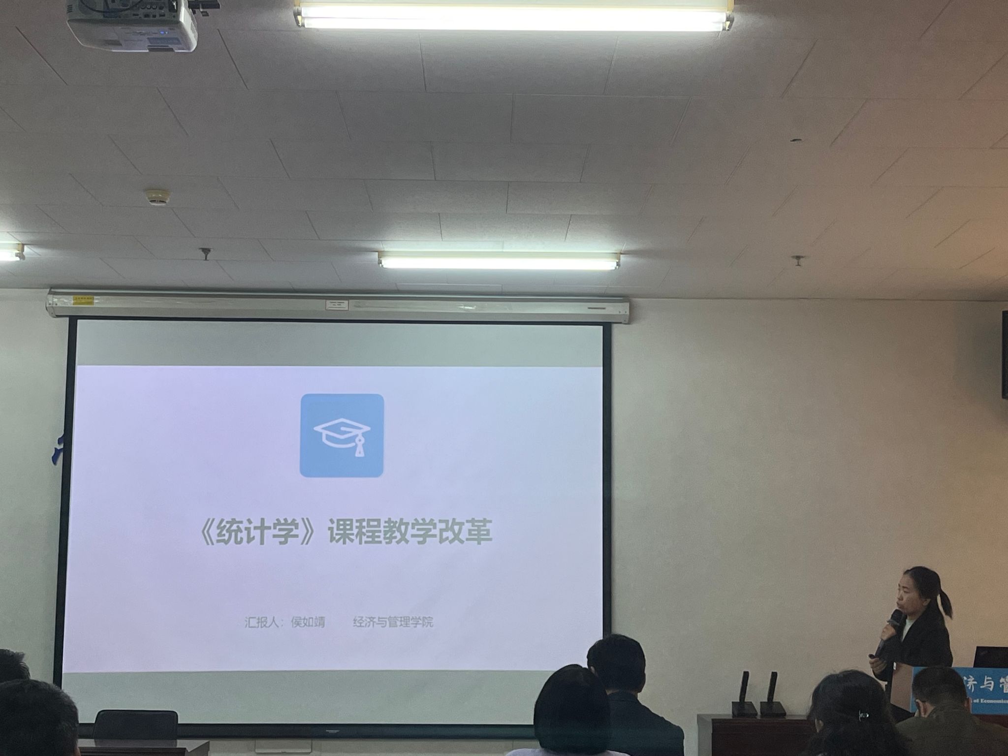 会上,侯如靖老师以《统计学》课程为例,分享了课程设计、课程评价、课程思政等三个方面的教学改革经验。她表示,教师要以课程评价改革为指导,创新教学内容、教学手段与方法,不断提高教学质量。