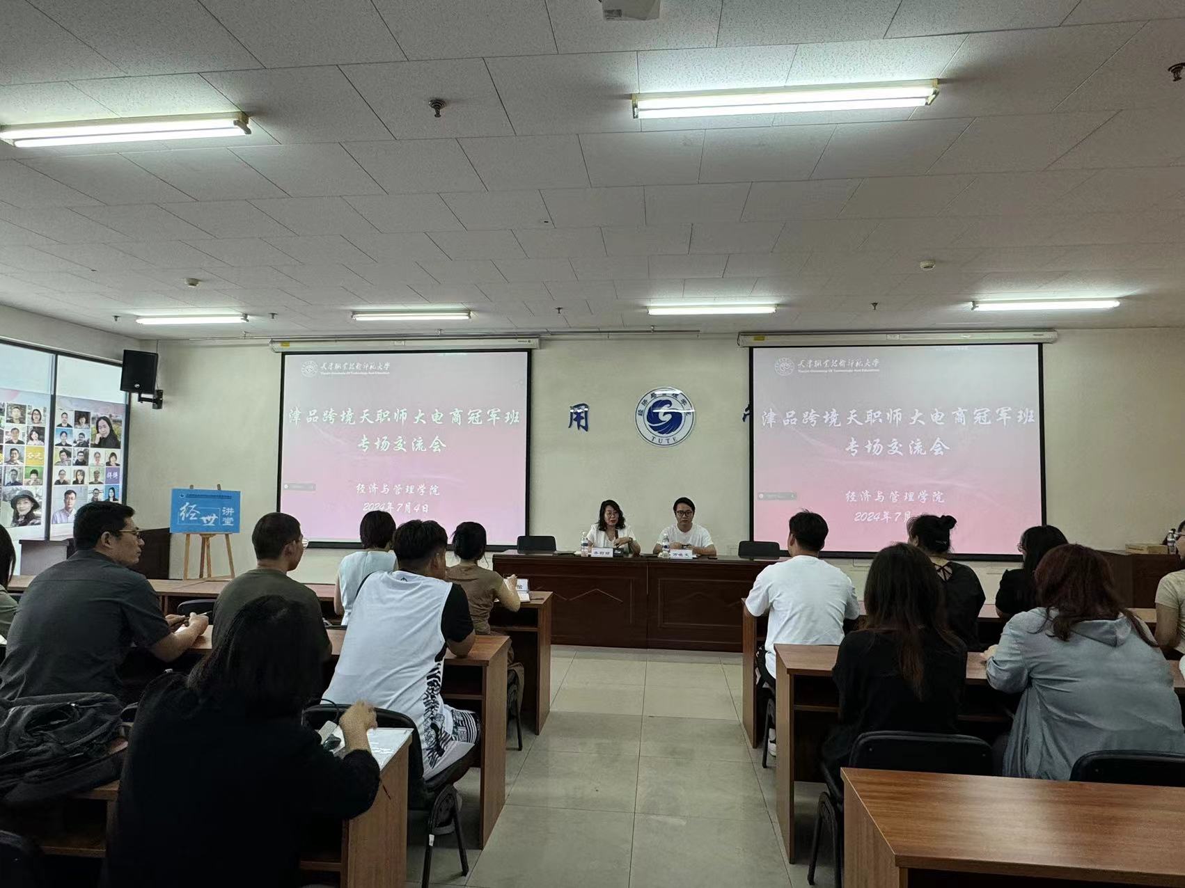 为深化校企合作,加强产教融合,7月4日,永利集团官网与津品跨境数字贸易产业园联合举办电子商务特色冠军班人才培养交流会。津品跨境数字贸易产业园总经理万晓文、津品跨境运营主管郭珊珊、人力资源部主管赵雪丽、办公室主任葛怡,永利集团官网经理齐莉丽、副经理齐旭高、电子商务系主任张波、副主任田怡、李静副教授、电商特色冠军2341班全体员工出席会议。会议由齐莉丽主持。